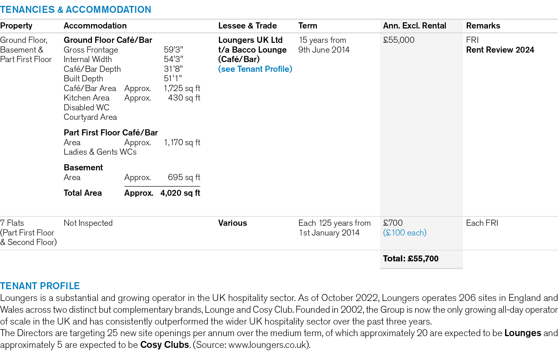 An attractive Grade II Listed building constructed in the 1800s (completely refurbished in 2014 plus further roof works and front redecorations in 2021), originally as a department store and now comprising a fashionable Café/Bar with seating for around 200 people on ground, basement and part first floors with separate front access to 7 Self-Contained Flats at part first floor and the entire second floor.
