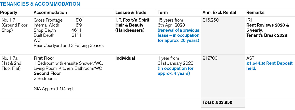 A mid terrace building comprising a Ground Floor Shop with separate rear access to a 3 Bed Self-Contained Flat on the first and second floors. The property includes a Courtyard and a hardstanding Parking Area for 4 cars.