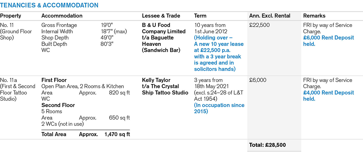 A mid-terrace building comprising a Ground Floor Shop with separate front access to a Tattoo Studio on first and second floors.