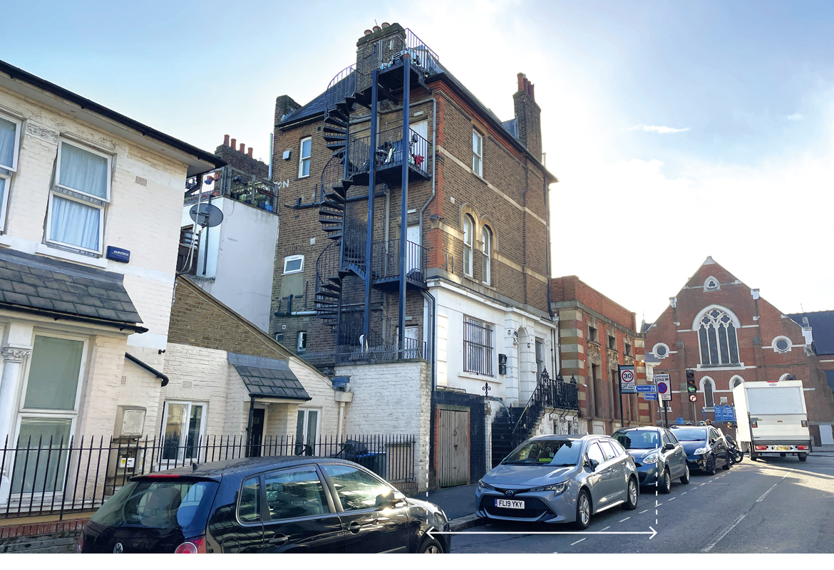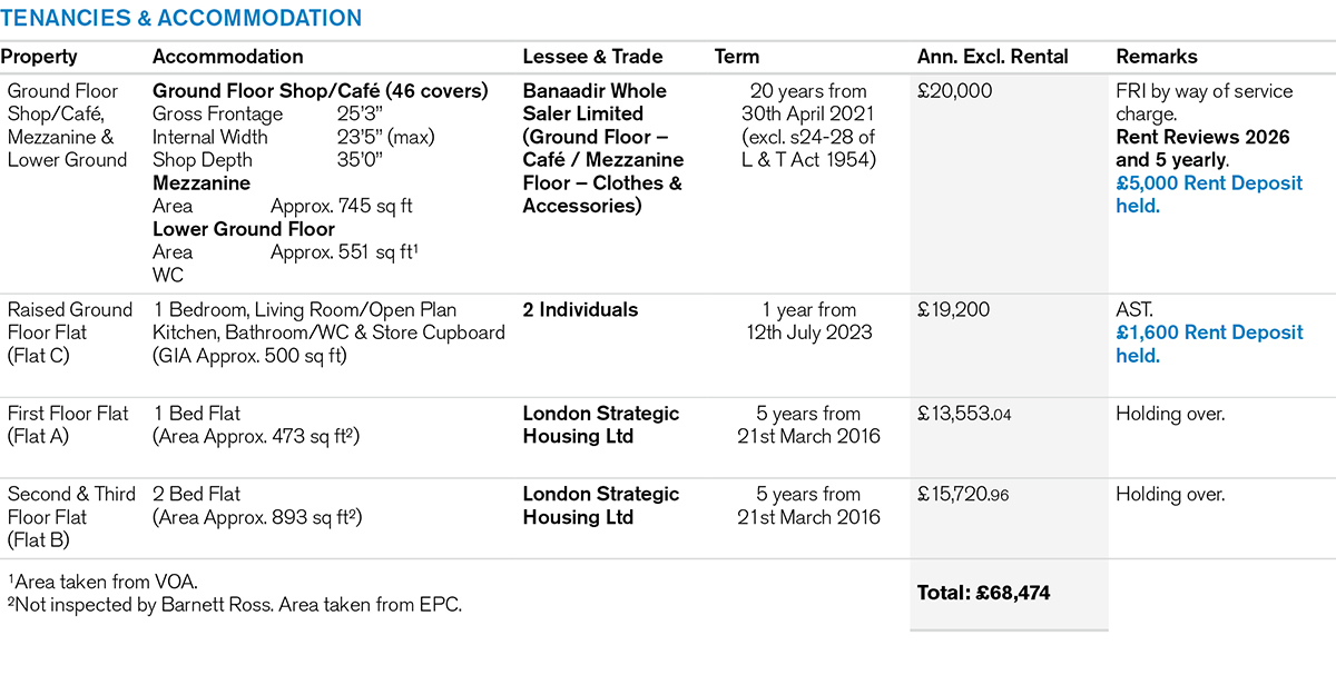 An end of terrace corner building (former bank) comprising a Ground Floor Corner Shop (currently used as Café) with Mezzanine and Lower Ground Floor together with separate side access to 3 Self-Contained Flats (2 x 1 Bed and 1 x 2 Bed) on raised ground, first, second and third floor levels.