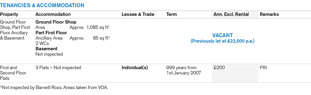 A mid terrace building comprising a Ground Floor Shop with Ancillary on part first floor together with hatch access to a Basement. In addition, there is separate rear access to 3 Flats (sold-off) on part first and second floors.