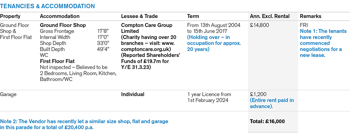 A mid terrace building comprising a Ground Floor Shop with separate rear access to a Self-Contained Flat on the first floor and Garage to the rear.
