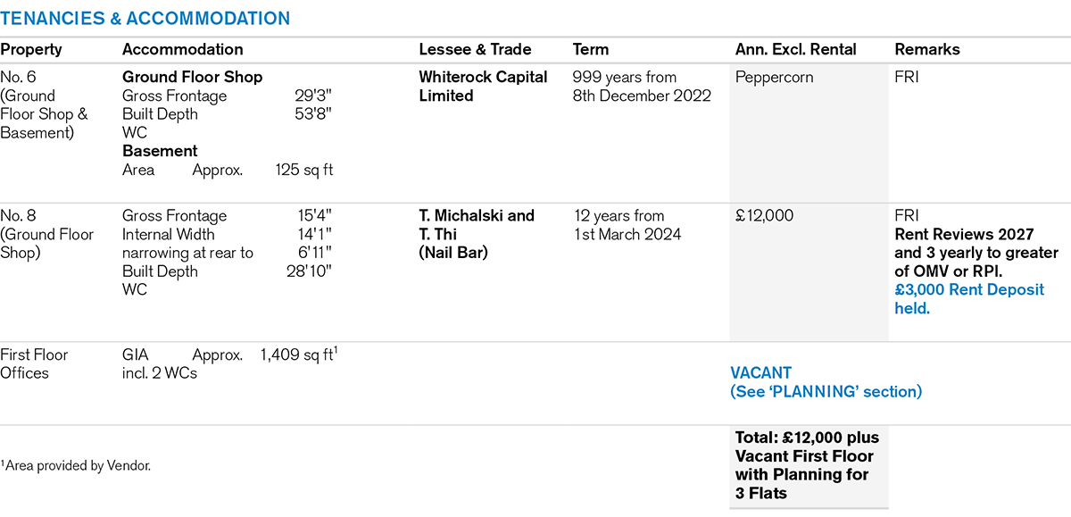 A Grade II Listed building comprising 2 Ground Floor Shops (one with a Basement) and separate rear access to Self-Contained Offices on the first floor - see ‘PLANNING' section.