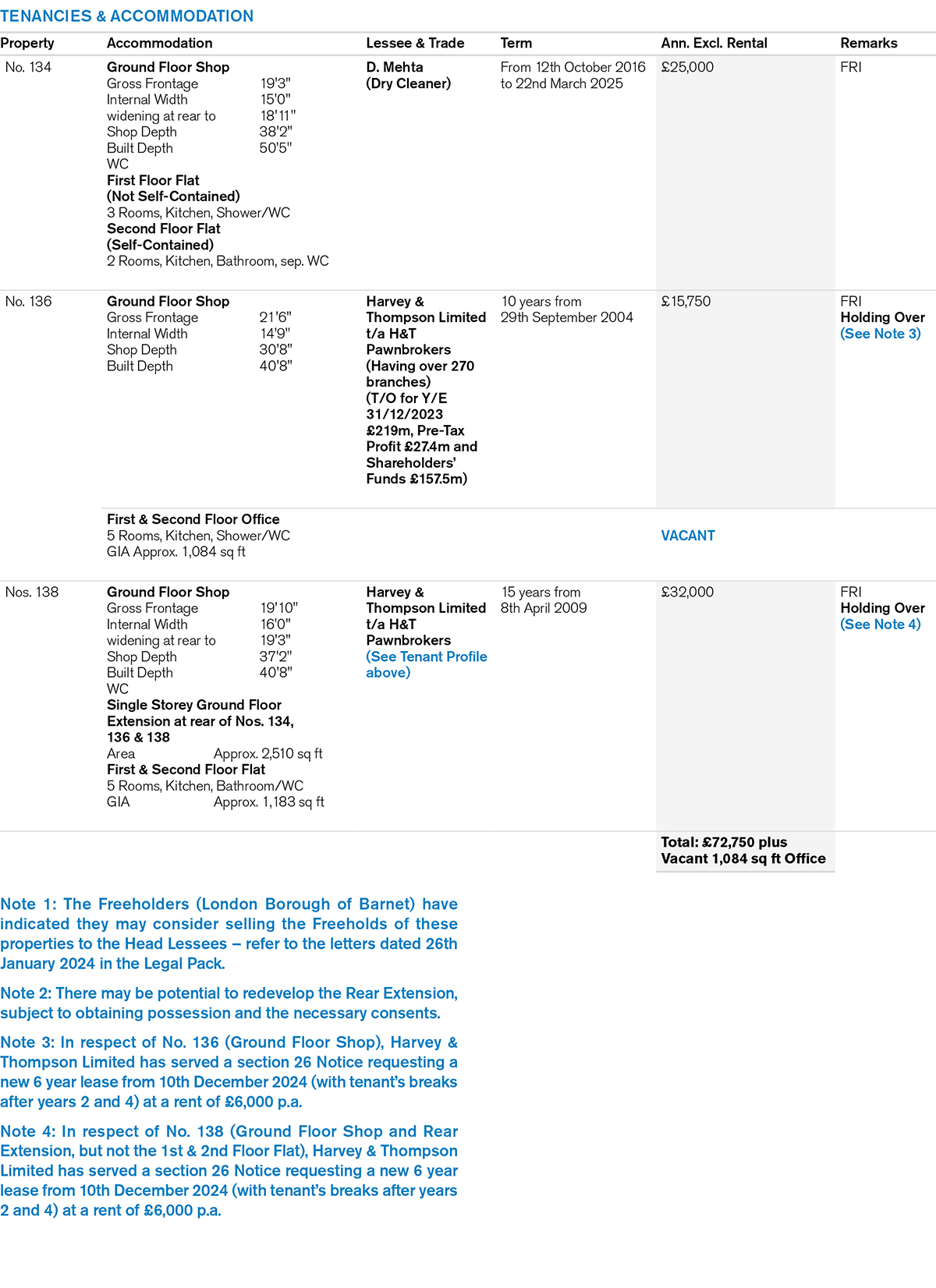 • No. 134: Leasehold for a term of 99 years from 25th March 1926 expiring 24th March 2025 (thus having approx. 8 months unexpired) at a total fixed ground rent of £25 p.a.