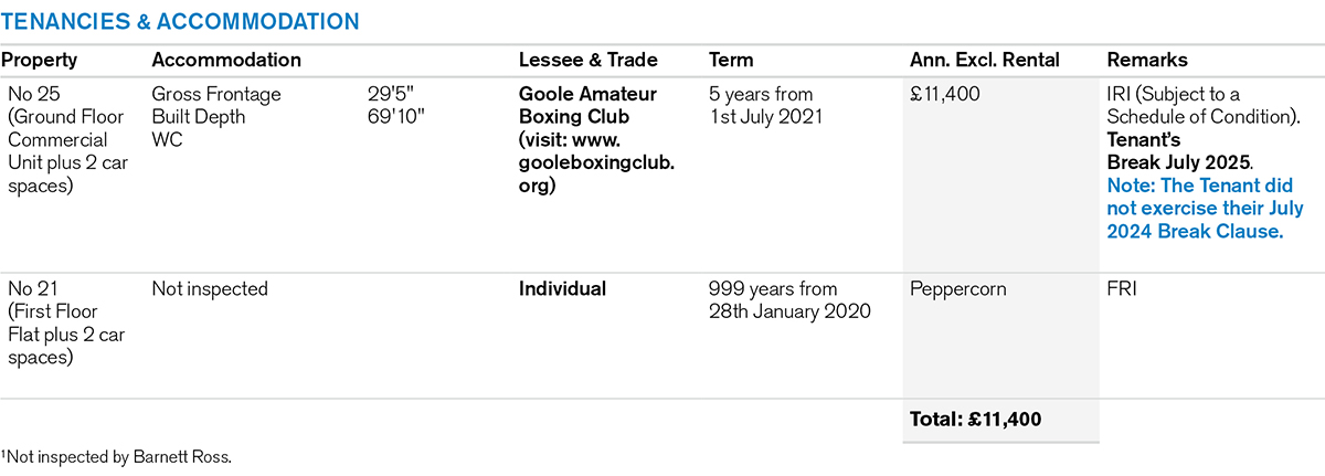 A mid-terrace building comprising a Ground Floor Commercial Unit with separate front access to a Self-Contained Flat at first floor level.