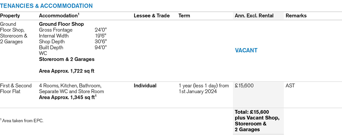 Freehold Commercial/Residential Investment – Vacant Shop, Store & 2 Garages + Flat let on AST