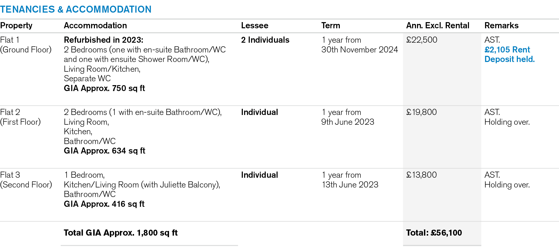 Freehold comprising 3 Self-Contained Flats – Under £460 psf.