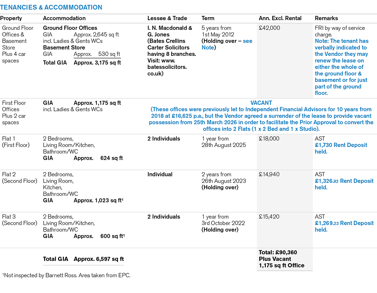 - 3 Self-Contained Flats (2 × 2 Bed and 1 × 1 Bed) on part first and second floors, which are all in very good condition.
