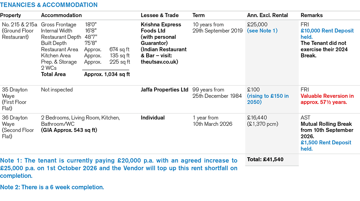 Freehold Restaurant & 2 Flats (1 let on an AST and 1 on a long lease) - Gross Yield 9.2%