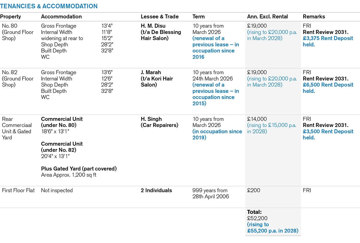 • A Commercial Unit at the rear (which also forms the basement at the front) plus a Gated Yard, currently used a car repairers, accessed from Market Lane.